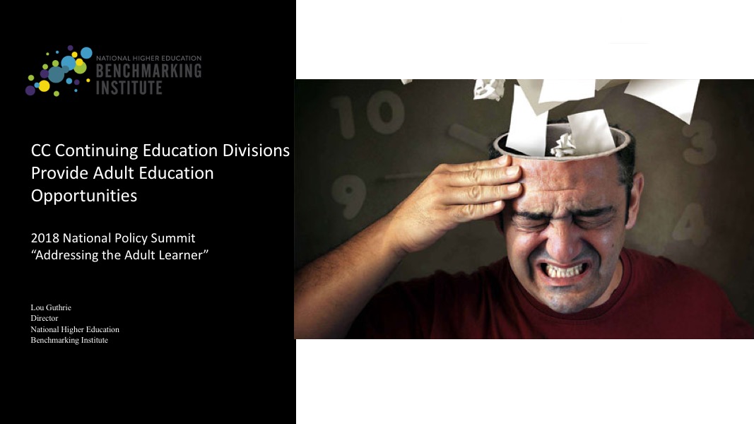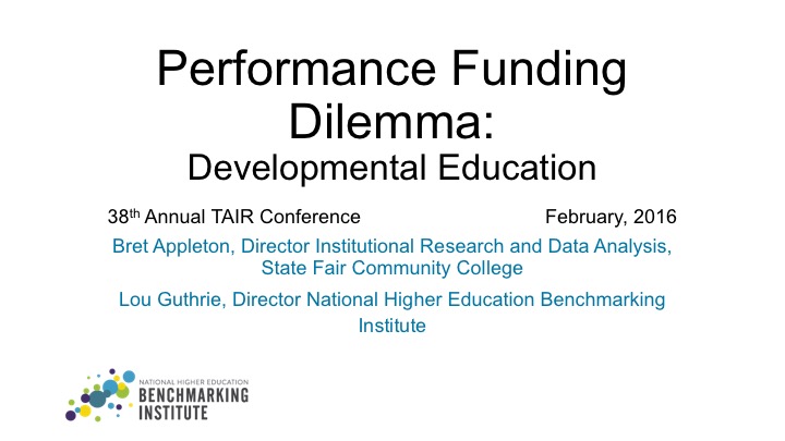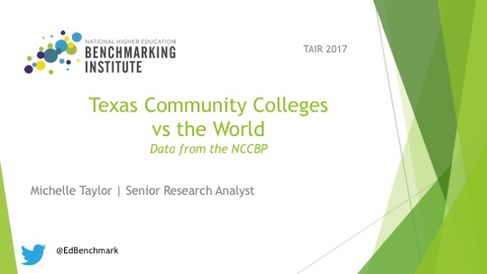 NHEBI Presentations Benchmarking University Support Units Using Community College Data as Evidence for Your HLC Accreditation Process CC Continuing Education Divisions Provide Adult Education Opportunities Missouri Community Colleges vs. USA Say Goodbye to the American Dream AHCE 2017: How to Measure the Success of Your Continuing Education Programs MidAIR 2017: How to Measure the Success of Your Continuing Education Programs Texas Community Colleges Versus the World Applying Demand Analysis and Benchmarking in Strategically Resourcing Academic Programs Using Trend and Benchmarking Data to Assess Improvement Initiatives Innovative Ways to Measure Student Success Benchmarking Cost and Productivity to Move the Needle Adding Cost and Benchmarking to Your Program Review Data You Can Use for Accreditation A Decade of Community College Data from The NCCBP Community College Benchmarking: Assessment, Improvement and Accountability Performance Funding Dilemma: Developmental Education How Much Does Student Success Cost? Adding Cost and Benchmarking to Your Program Review What Impact Do Student Services Have on Student Success Benchmarking for Decision-making